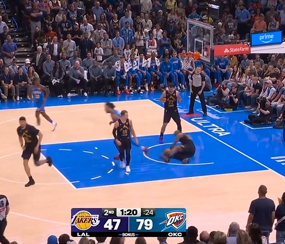 炒股配资开户技巧 詹姆斯抢板被打到倒地 东契奇先拉起老詹再重新组织进攻